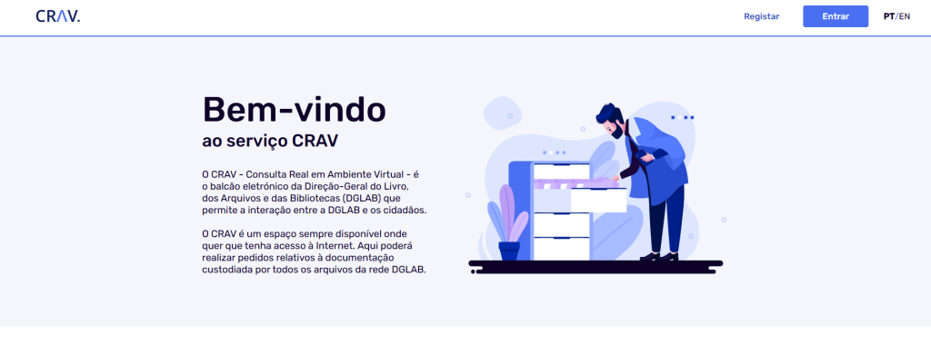 - Todos os pedidos de requisição de documentos, informação, pesquisas, emissão de certidões e de reproduções não certificadas de documentos são obrigatoriamente formalizados a partir do Balcão Virtual – CRAV, disponível em https://crav.arquivos.pt